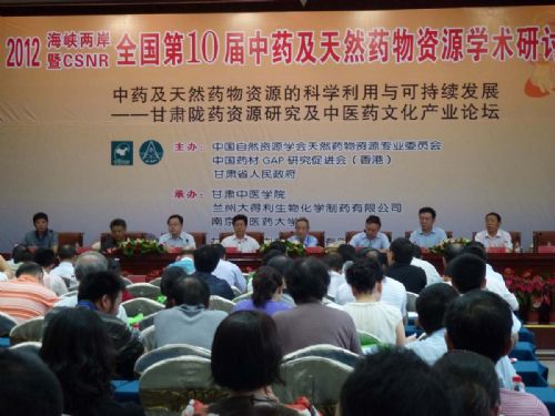 2012年8月14日—18日,由中國自然資源學(xué)會(huì)天然藥物資源專業(yè)委員會(huì)、中國藥材GAP研究促進(jìn)會(huì)(香港)、甘肅省人民政府聯(lián)合主辦,甘肅中醫(yī)學(xué)院、蘭州大得利生物化學(xué)制藥(廠)有限公司、南京中醫(yī)藥大學(xué)聯(lián)合承辦的“2012海峽兩岸暨CSNR全國第十屆中藥及天然藥物資源學(xué)術(shù)研討會(huì)”于在甘肅蘭州隆重召開。天津中醫(yī)藥大學(xué)校長(zhǎng)、中國工程院院士張伯禮、中國中藥協(xié)會(huì)副會(huì)長(zhǎng)吳憲、中國藥材GAP研究促進(jìn)會(huì)會(huì)長(zhǎng)周榮漢教授、CSNR天然藥物資源專業(yè)委員會(huì)主任委員段金廒教授等來自全國31個(gè)省、市、自治區(qū)以及港澳臺(tái)等地區(qū)400多名代表參會(huì)。
